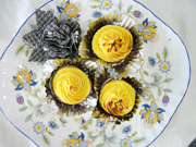 - 星型口金をつけた絞り袋に1を入れ、2の上に絞り出す。水でといた卵黄を塗り、オーブントースターで焼き色がつくまで焼く。