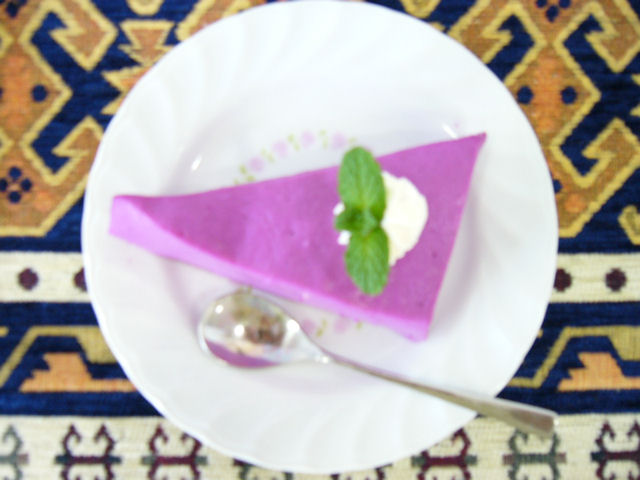 - 3が固まったら切り分け、4のホイップクリームを絞り、ミントの葉を飾る。