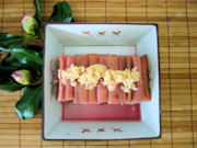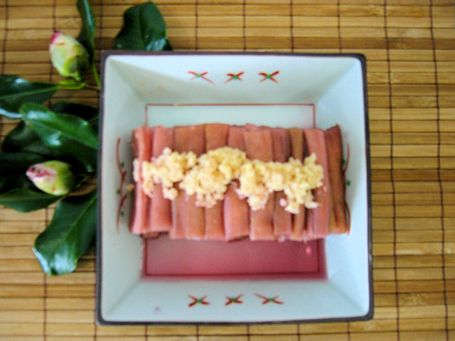 - ざるにあけ、土鍋などに入れ、酢をかけて蓋をする。(色移りを防ぐため)
