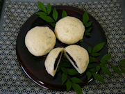 - 3の生地を平らにし、手のひらにのせ、あんを包み込み、まんじゅうの形にととのえる。
