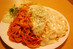 - ナポクリ(ナポリタンのホワイトソースがけスパゲティ) 900円(ランチ) 1100円(ディナー)